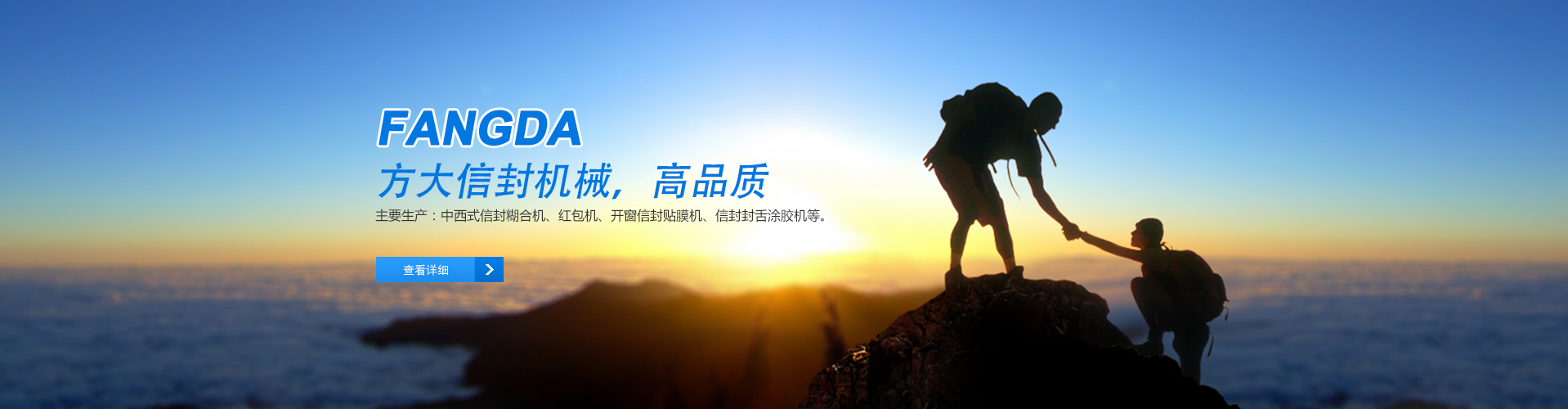 瑞安方大信封機械有限公司,是專業(yè)生產(chǎn)信封機糊合設(shè)備系列產(chǎn)品的企業(yè),主要產(chǎn)品有:中西式信封糊合機、紅包機、開窗信封貼膜機、信封封舌涂膠機等。實力來自規(guī)模,品質(zhì)源自專業(yè)。我廠擁有專業(yè)老練的工程設(shè)計人員,經(jīng)驗豐富的生產(chǎn)安裝人員,嚴(yán)謹(jǐn)認(rèn)真的質(zhì)量檢驗人員,從而保證了所生產(chǎn)機械的優(yōu)良品質(zhì)。此外,我廠也將從技術(shù)上、性能上不斷改進提高,以更好的滿足客戶的需求?!翱蛻糁辽希?wù)為本”是我廠長期一貫的服務(wù)理念,從安裝、測試、保養(yǎng)、維修等售后服務(wù),我們會給予客戶充足的信息資訊與技術(shù)支持,因此在業(yè)界獲得良好的口碑及信譽,您的滿意是我們的榮耀!歡迎您來電查詢、來人參觀,我們一定能給你滿意的答復(fù)!秉承“顧客至上,銳意進取”的經(jīng)營理念,堅持“客戶為先”的原則為廣大客戶提供溫馨的服務(wù)。歡迎惠顧!